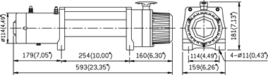 Тяговое усилие : 4082 кг Напряжение : 12 В Мощность : 4.60 л.с. Передача : 3-х ступенчатая Планетарная Передаточное число : 156 :1 Тормоз : авто Вес : 46 кг Длина троса : 30.00 м Диаметр троса : 8.00 мм Габаритные размеры : 159x181x593 мм Максимальный потребляемый ток А : 350 А Скорость намотки троса от/до Макс нагрузка/Смотка : 13,4/2 м/c Комплектность : Губки, Пульт управления, Крепежные болты, блок Производитель : ComeUp ComeUp
