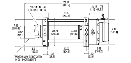 Электролебедка Warn SERIES 15-A-59, гидрав. Тяговая сила на тросе: 6818 кг. Высокопроизводительная индустриальная гидравлическая лебедка. Трос, ролики, фурнитура и шланги в комплект поставки не входят. sn 65931